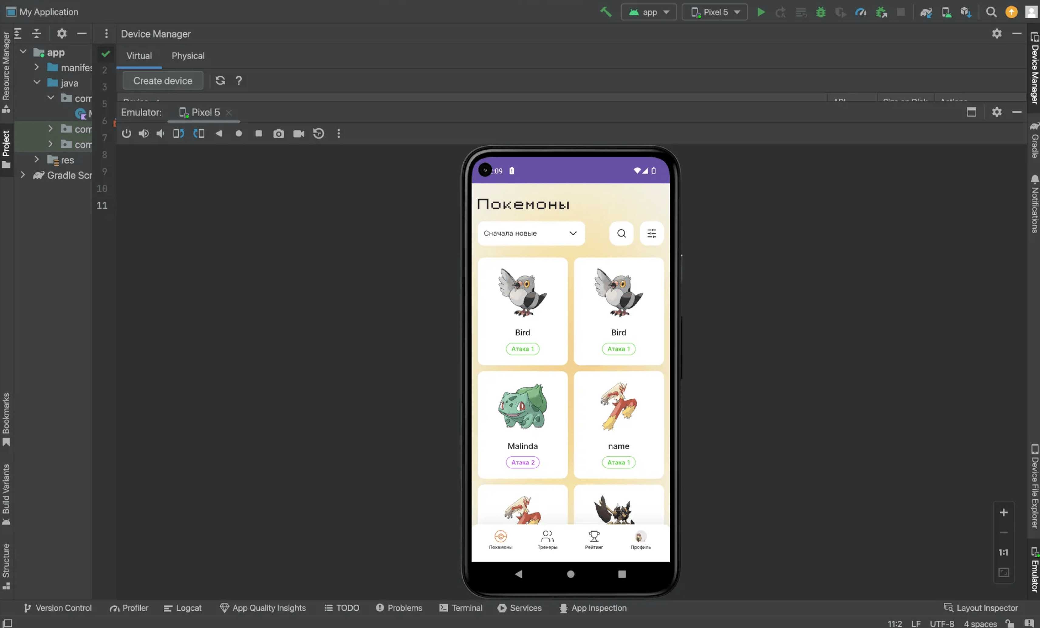 Практика на тренажёрах собственной разработки